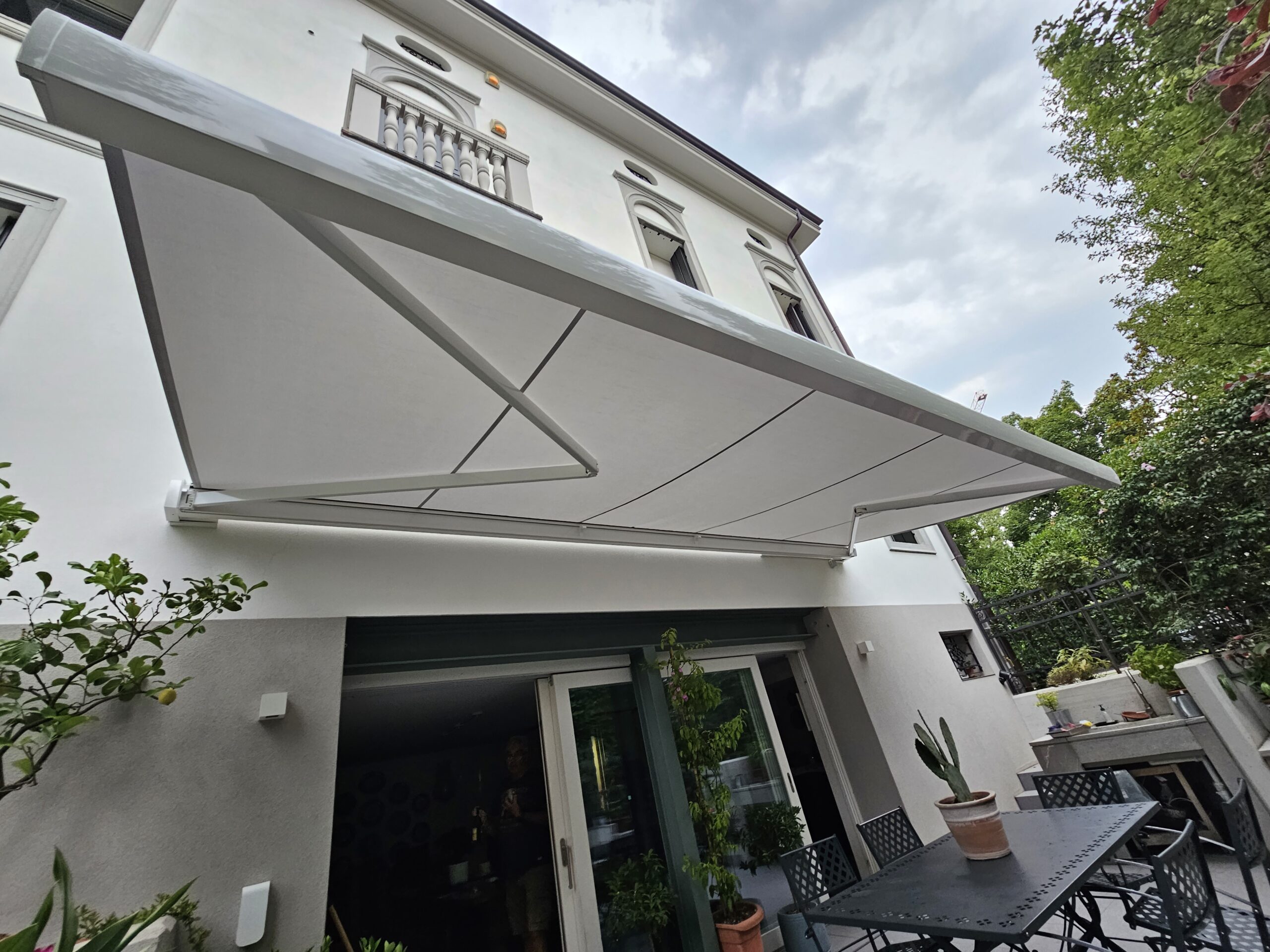EPICA LITE è una tenda a bracci estensibili con cassonetto su supporti laterali fissi con contropiastra di ancoraggio, bracci Balteus o spin. Il cassonetto, ispezionabile, viene fornito in tre profili separati. I supporti consentono di installare la tenda sia a parete che a soffitto e la regolazione può essere eseguita in un’unica soluzione grazie al sistema con vite passante.